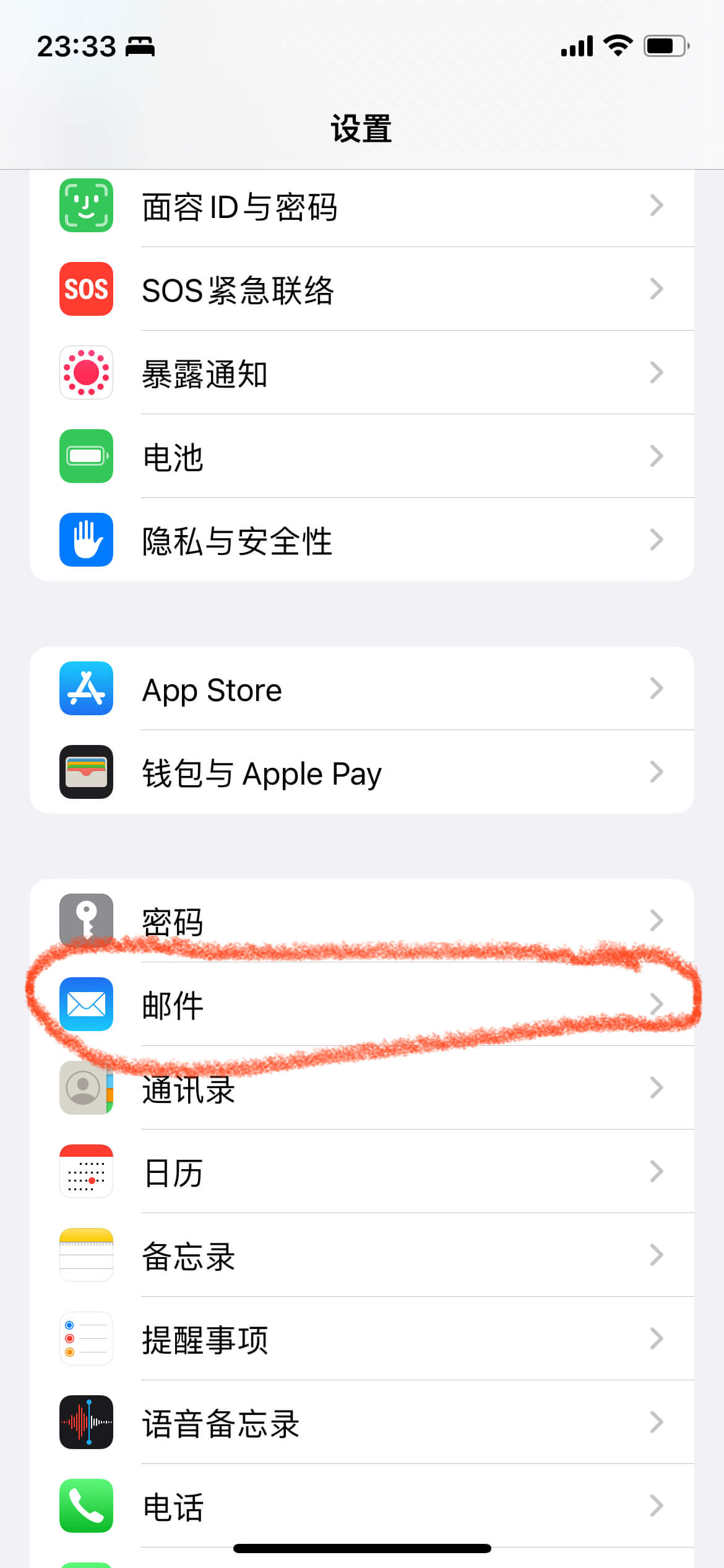 iPhone 在系统 ios15 及 ios16 上,添加邮箱账号,需要在系统设置中,找到邮件;