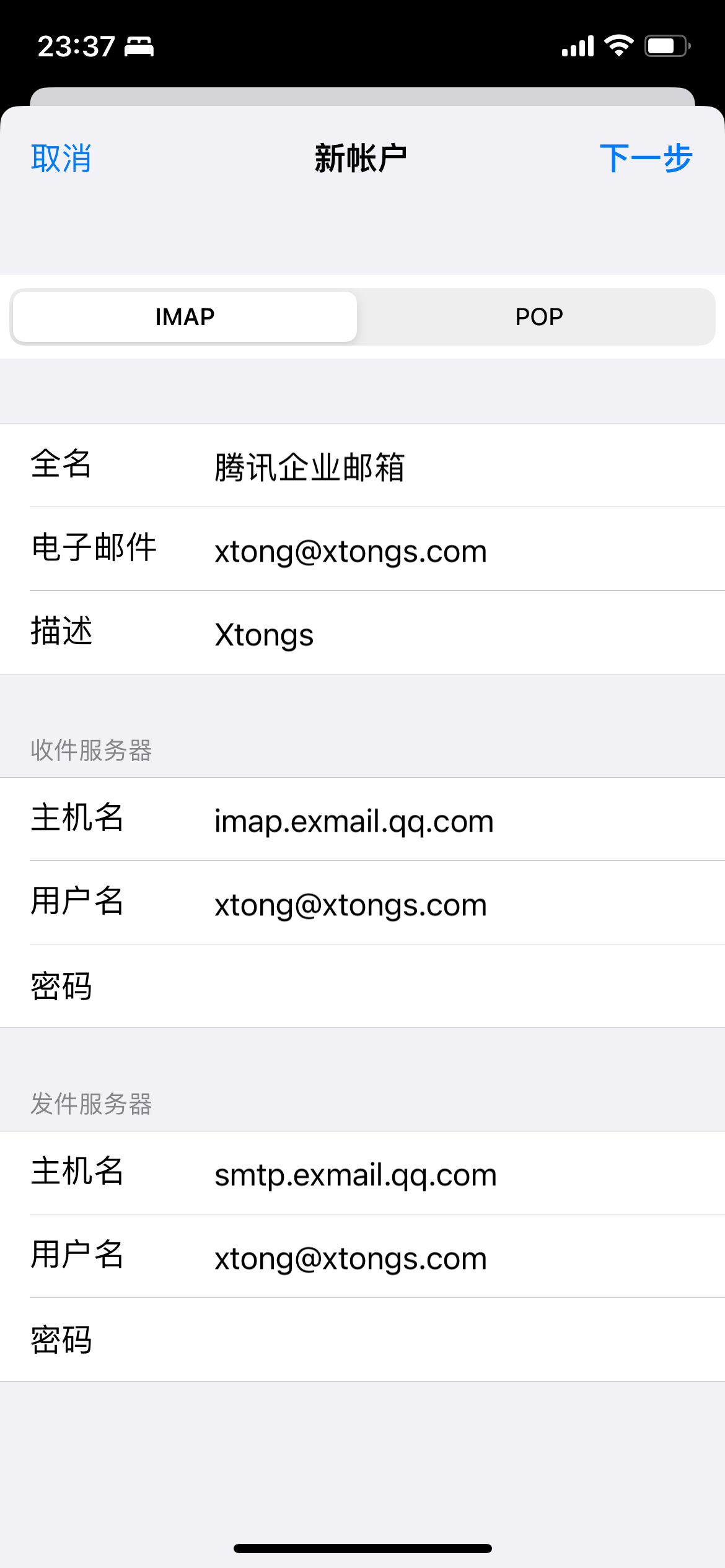 Xtong1 在 iPhone 上如何添加邮箱账号